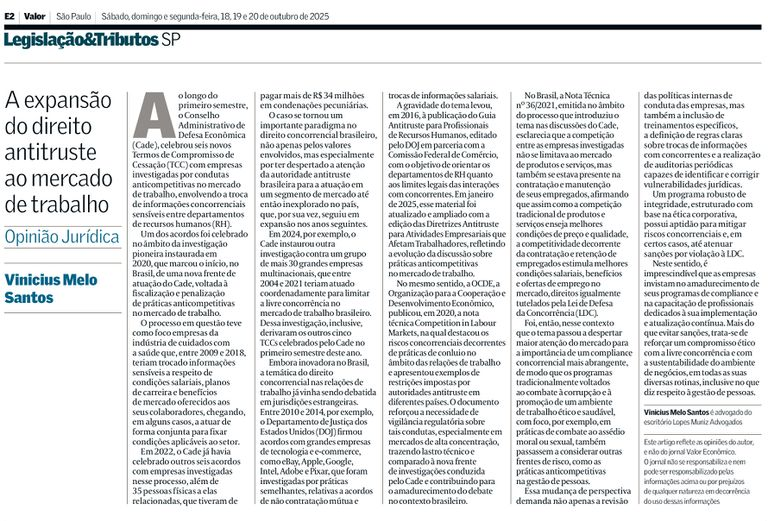No mesmo sentido, a OCDE, a Organização para a Cooperação e Desenvolvimento Econômico, publicou, em 2020, a nota técnica Competition in Labour Markets, na qual destacou os riscos concorrenciais decorrentes de práticas de conluio no âmbito das relações de trabalho e apresentou exemplos de restrições impostas por autoridades antitruste em diferentes países. O documento reforçou a necessidade de vigilância regulatória sobre tais condutas, especialmente em mercados de alta concentração, trazendo lastro técnico e comparado à nova frente de investigações conduzida pelo Cade e contribuindo para o amadurecimento do debate no contexto brasileiro.