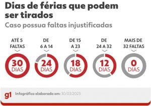 G1 31/03/2023 Saiba se faltar no trabalho pode reduzir os dias de férias Empresa pode descontar as faltas do salário ou demitir o funcionário? Veja as consequências das ausências no trabalho. Por g1...