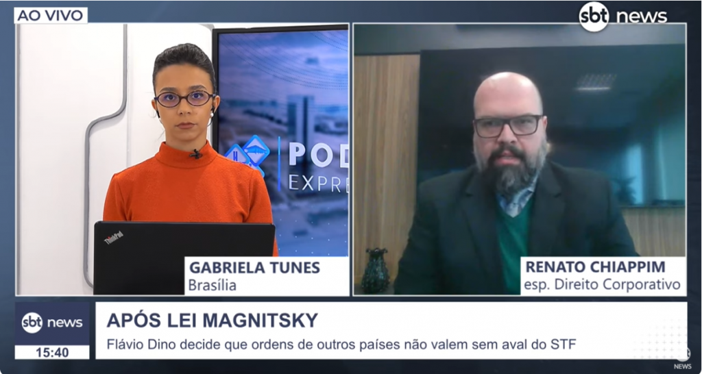 Nesta segunda-feira (18), o ministro do Supremo Tribunal Federal (STF) Flávio Dino, determinou em decisão judicial que cidadãos brasileiros não podem ser afetados em território nacional por leis e decisões estrangeiras tomadas por atos que tenham sido realizados no Brasil. Na decisão, Dino afirmou que o objetivo é proteger os brasileiros de “indevidas ingerências estrangeiras”. O novo despacho veio após as sanções do governo norte-americano ao ministro do STF Alexandre de Moraes com a Lei Magnitsky, que impede a entrada do magistrado no país, além do bloqueio de contas bancárias e cartões de crédito. O especialista em direito corporativo, Renato Chiappim, falou sobre o tema ao “Poder Expresso”.