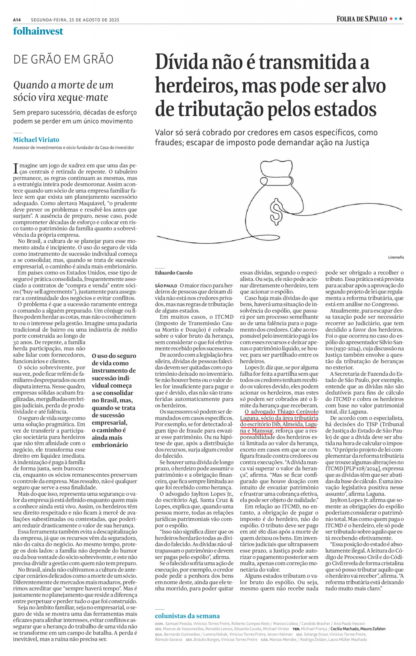 O advogado Thiago Cerávolo Laguna, sócio da área tributária do escritório Dib, Almeida, Laguna e Manssur, reforça que a responsabilidade dos herdeiros está limitada ao valor da herança, exceto em casos em que se configura fraude contra credores ou contra execuções.