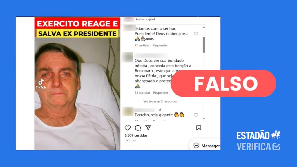 A gravação, narrada por uma voz feminina, afirma que seria urgente a notícia de que o Exército teria se posicionado sobre a condenação de Bolsonaro. A narração não informa a fonte da informação, nem detalha qual teria sido o posicionamento da instituição, característica comum de conteúdos inverídicos que circulam nas redes sociais.