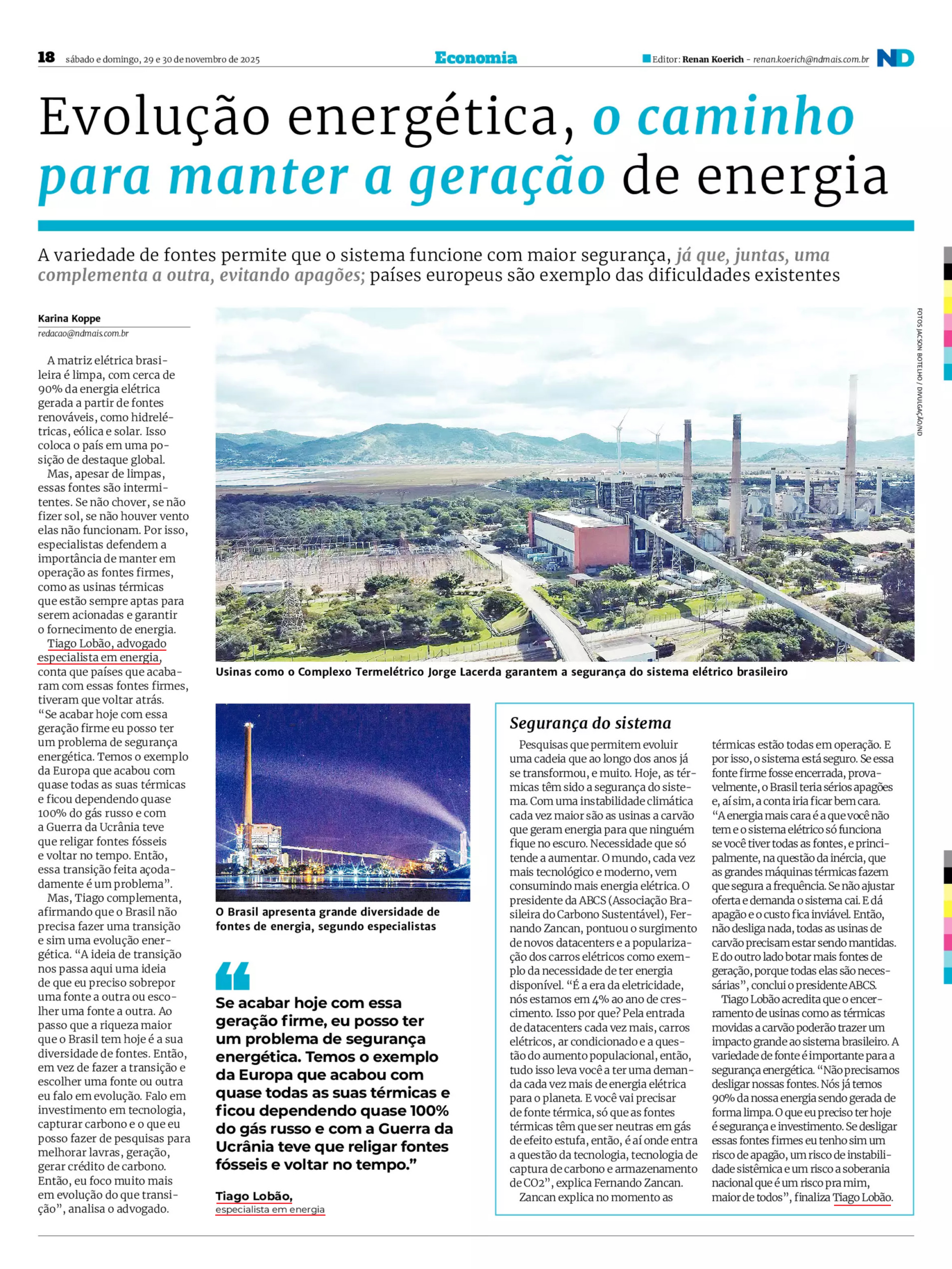 Tiago Lobão, advogado especialista em energia, conta que países que acabaram com essas fontes firmes, tiveram que voltar atrás. “Se acabar, hoje, com essa geração firme eu posso ter um problema de segurança energética. Temos o exemplo da Europa que acabou com quase todas as suas térmicas e ficou dependendo quase 100% do gás russo e com a Guerra da Ucrânia teve que religar fontes fosseis e voltar no tempo. Então, essa transição feita açodadamente é um problema”.