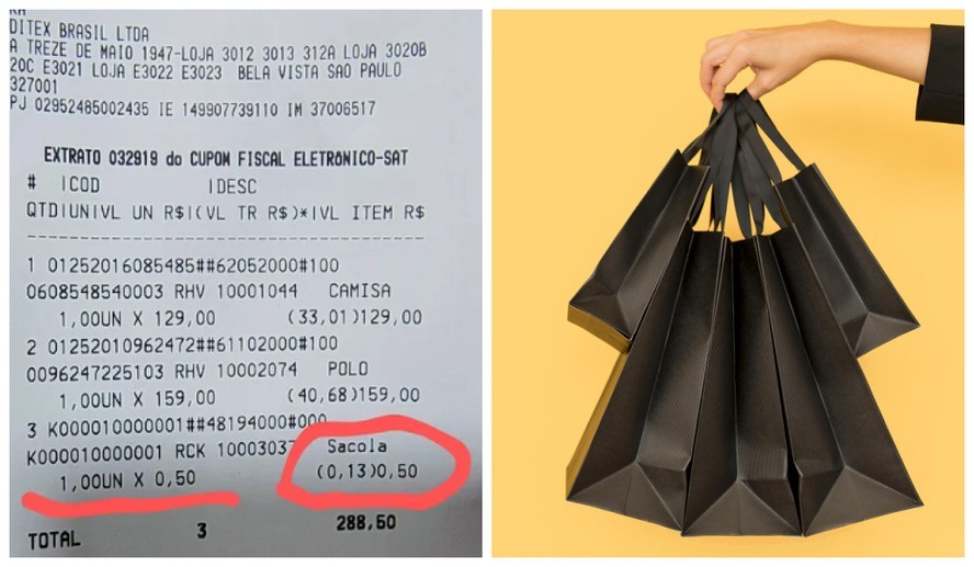Na publicação, o autor escreveu: “Deviam ter vergonha de cobrar pela sacola. Isso é coisa de atacado, não de loja de moda. Não é caro, mas é descortês, já cobram bem caro pelos produtos”. Nos comentários, surgiram questionamentos como: “Isso não caracteriza venda casada?” e “Pode processar que é causa ganha como venda casada, não?”