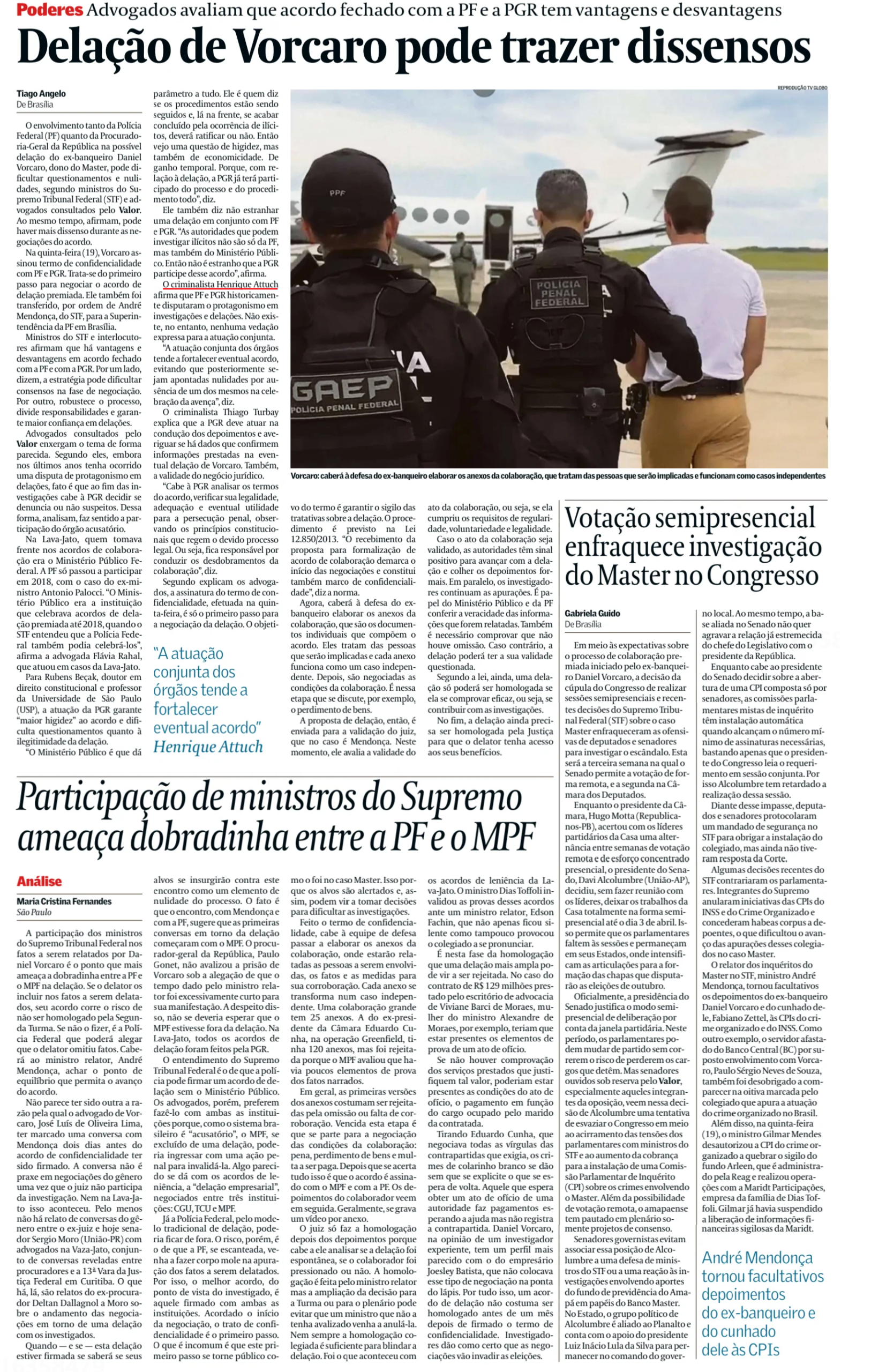 O envolvimento tanto da Polícia Federal (PF) quanto da Procuradoria-Geral da República na possível delação do ex-banqueiro Daniel Vorcaro, dono do Master, pode dificultar questionamentos e nulidades, segundo ministros do Supremo Tribunal Federal (STF) e advogados consultados pelo Valor. Ao mesmo tempo, afirmam, pode haver mais dissenso durante as negociações do acordo.