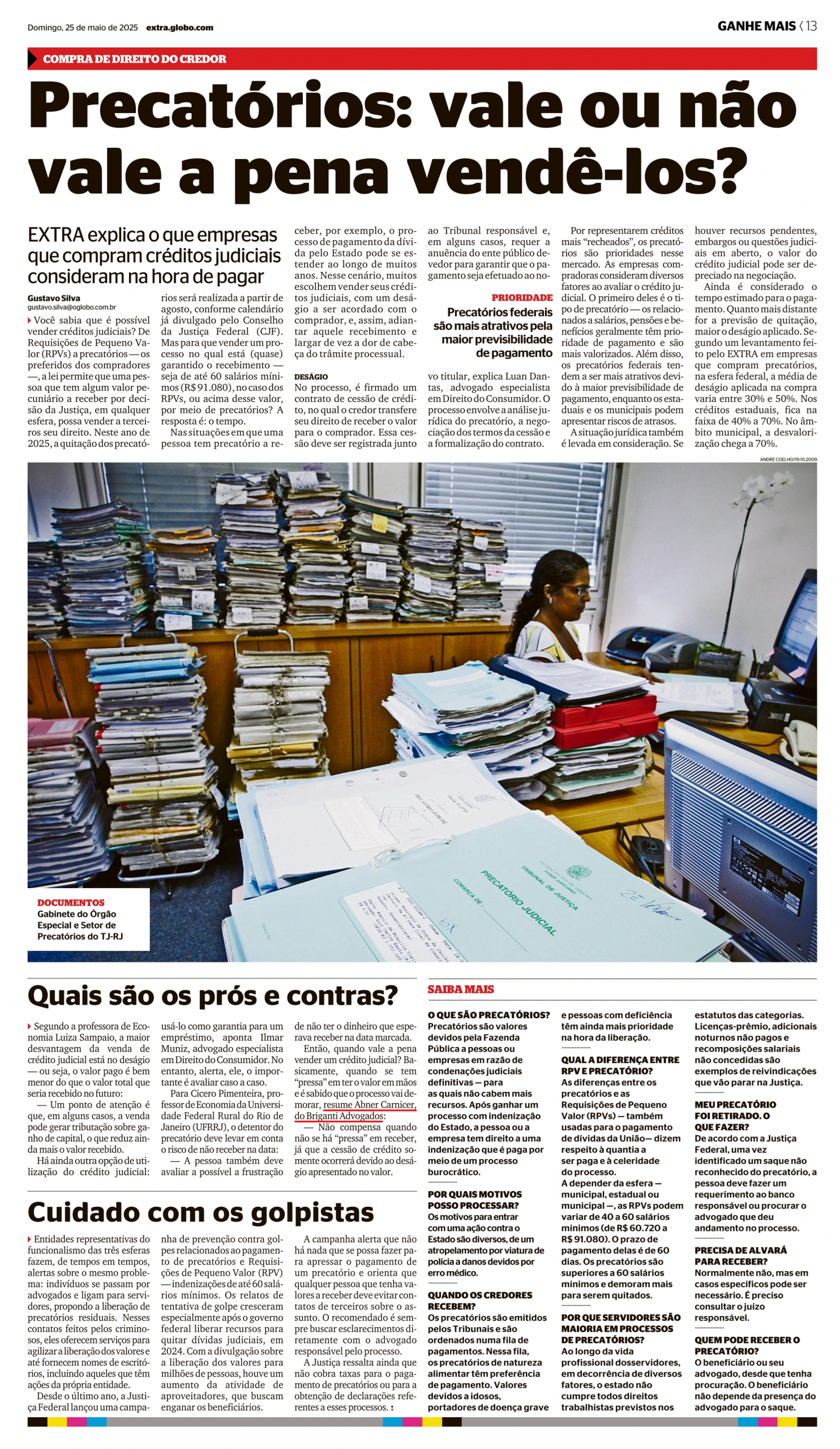 Você sabia que é possível vender créditos judiciais? De Requisições de Pequeno Valor (RPVs) a precatórios — os preferidos dos compradores —, a lei permite que uma pessoa que tem algum valor pecuniário a receber por decisão da Justiça, em qualquer esfera, possa vender a terceiros seu direito. Neste ano de 2025, a quitação dos precatórios será realizada a partir de agosto, conforme calendário já divulgado pelo Conselho da Justiça Federal (CJF).