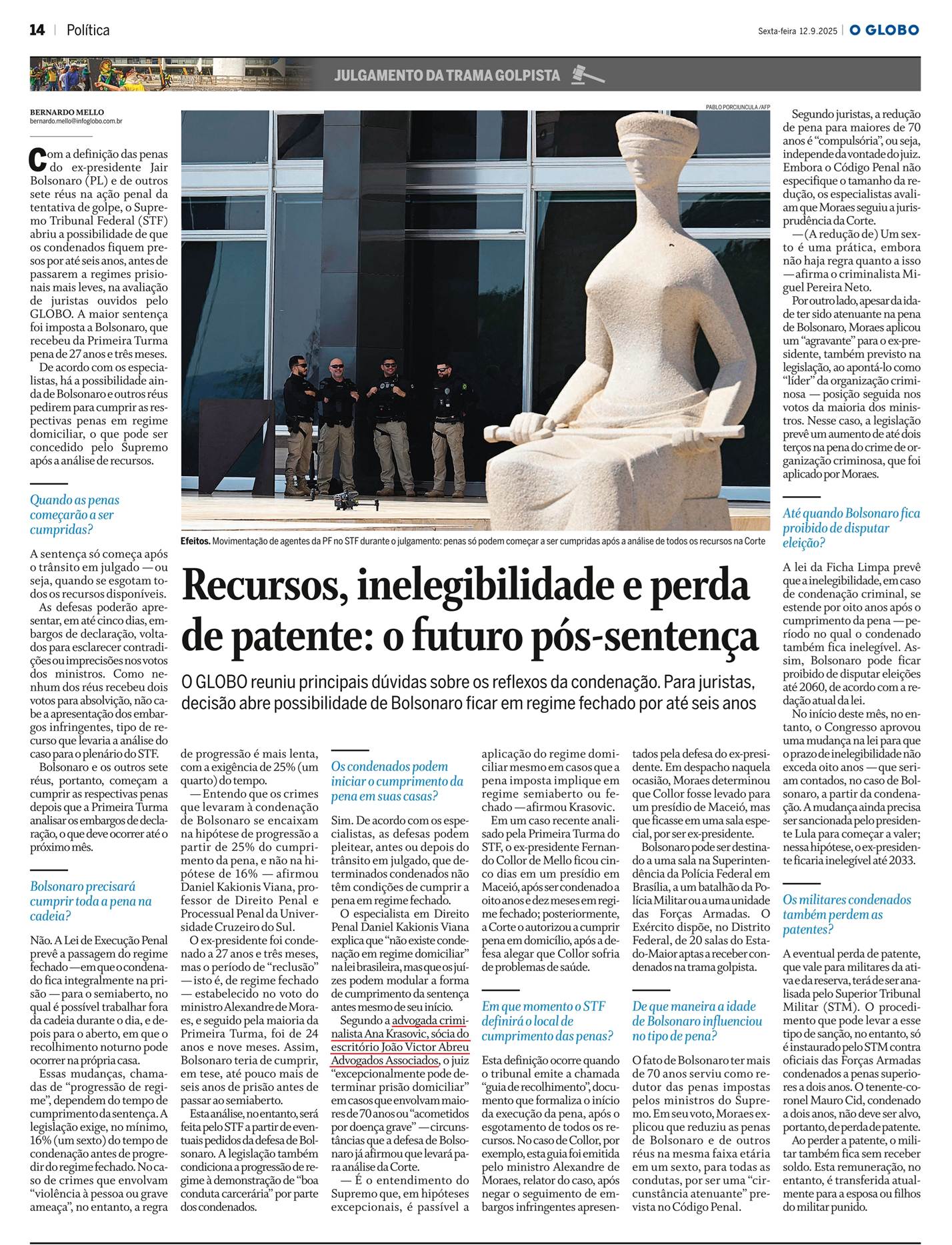 — Entendo que os crimes que levaram à condenação de Bolsonaro se encaixam na hipótese de progressão a partir de 25% do cumprimento da pena, e não na hipótese de 16% — afirmou Daniel Kakionis Viana, professor de Direito Penal e Processual Penal da Universidade Cruzeiro do Sul.