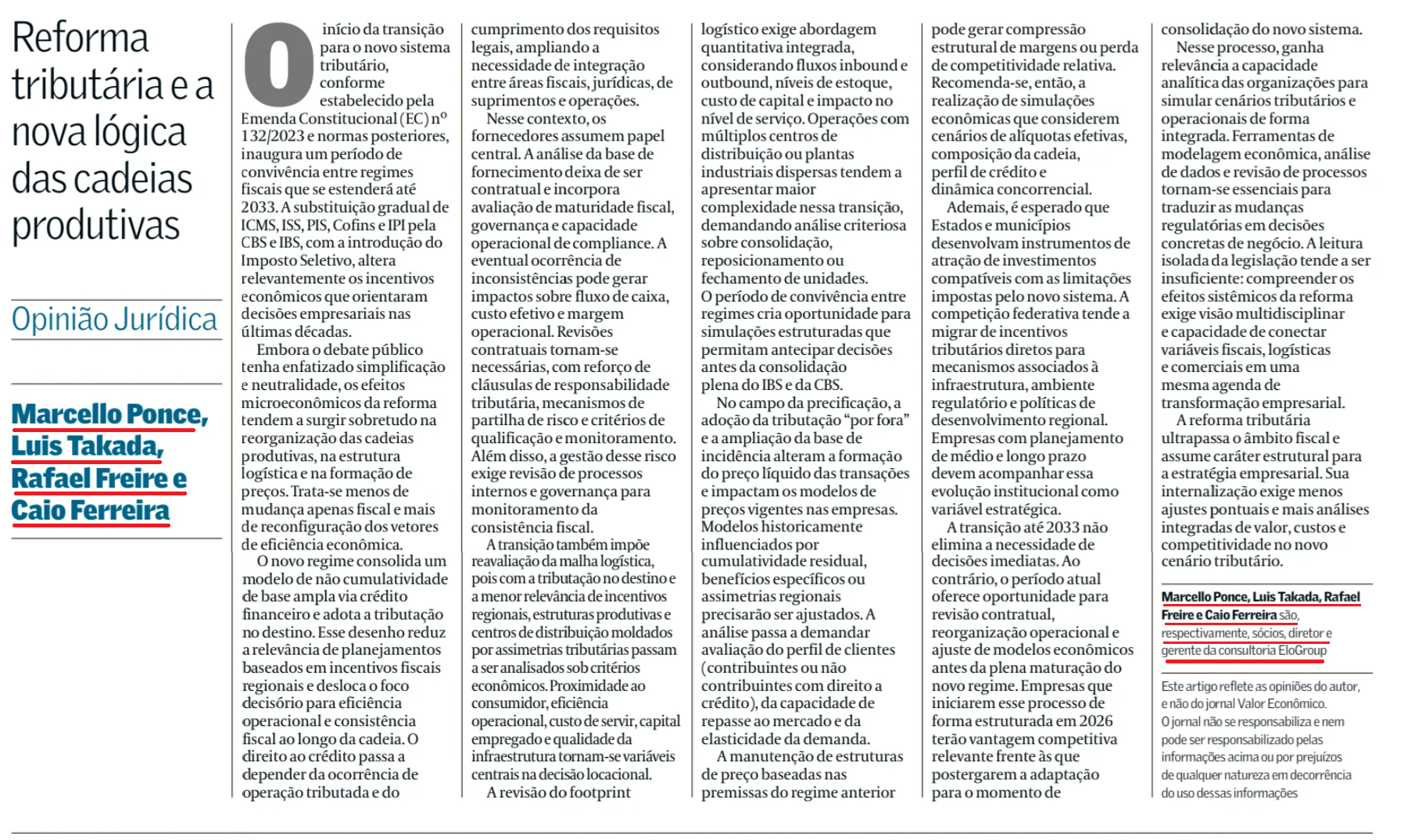 A transição até 2033 não elimina a necessidade de decisões imediatas. Ao contrário, o período atual oferece oportunidade para revisão contratual, reorganização operacional e ajuste de modelos econômicos antes da plena maturação do novo regime. Empresas que iniciarem esse processo de forma estruturada em 2026 terão vantagem competitiva relevante frente às que postergarem a adaptação para o momento de consolidação do novo sistema.