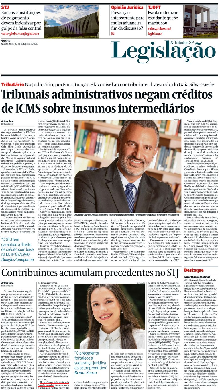 Os tribunais administrativos têm negado créditos de ICMS sobre materiais listados por contribuintes como insumos “secundários ou intermediários”. Levantamento feito pelo escritório Gaia Silva Gaede Advogados mostra que a maioria das decisões proferidas não aplica os critérios definidos em julgamento da 1ª Seção do Superior Tribunal de Justiça (STJ). Nas instâncias inferiores do Judiciário, porém, a situação é favorável às empresas.